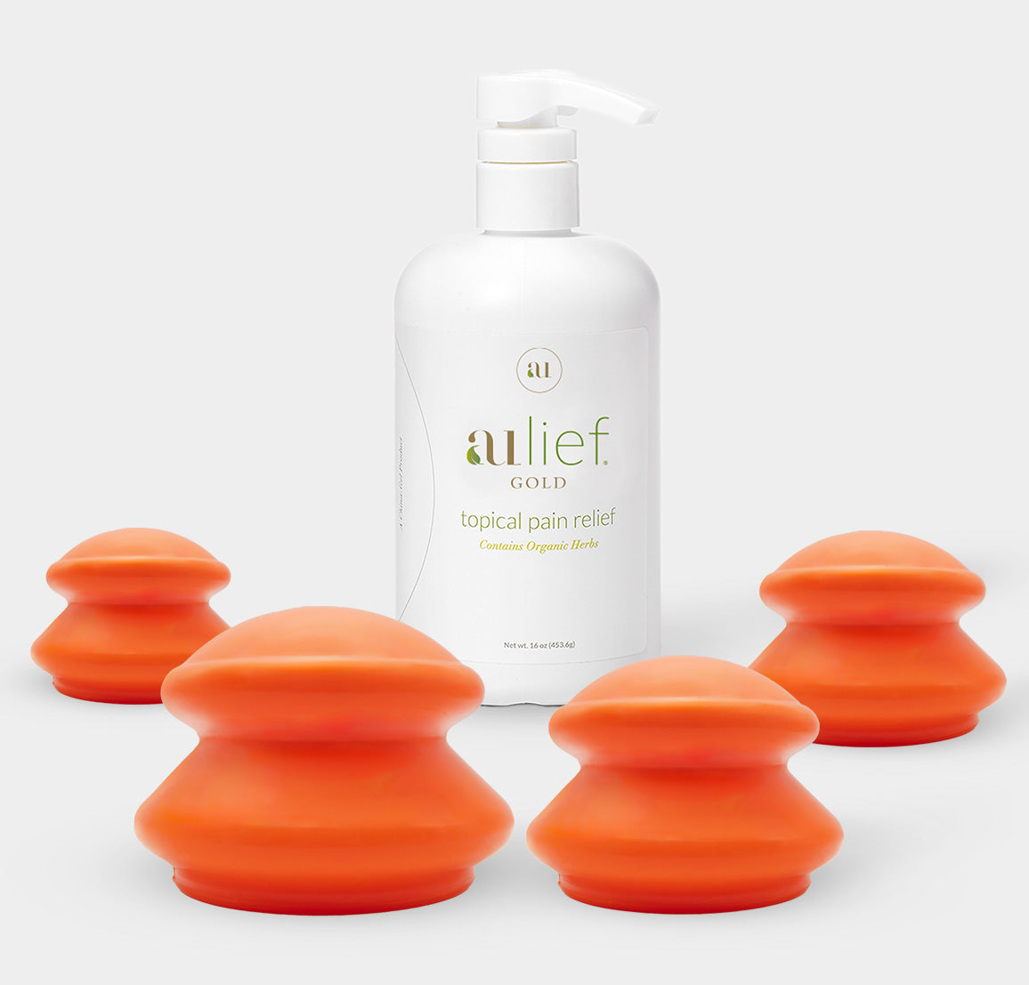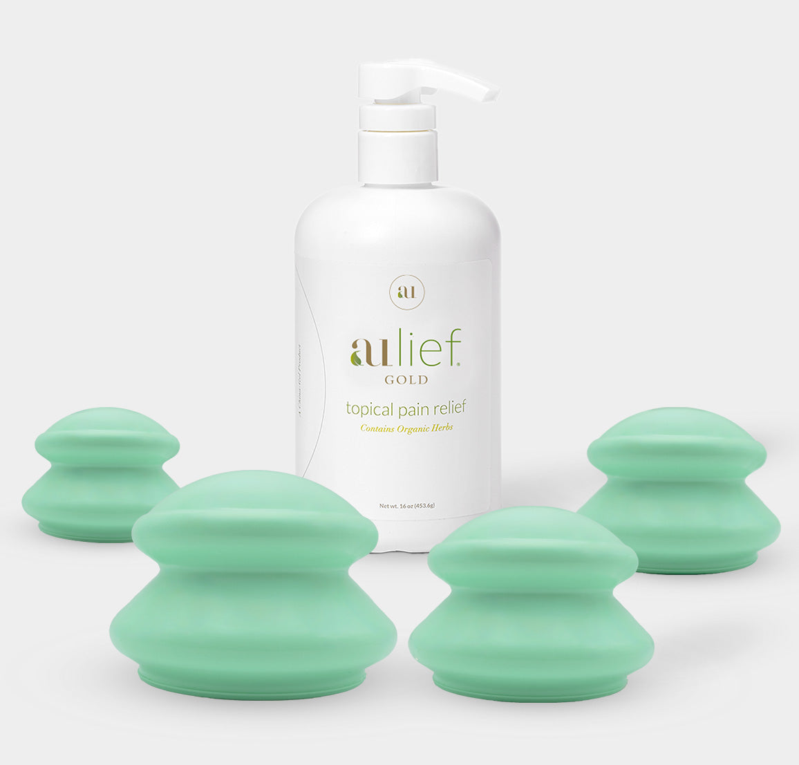aulief Gold is our gentle, organically sourced pain relief cream, and it's ideal for use as a cupping gel. Apply it before cupping for smooth glide and cup movement, while the organic formula works to provide gentle relief perfect for chronic pain, sensitive areas like back and neck, and daily use. The milder cooling sensation won't trigger cold muscle spasms in sensitive areas. Cupping increases circulation and releases tight tissue, while aulief Gold provides gentle, soothing pain relief - two treatments in one application for maximum therapeutic benefits without intensity that could cause discomfort.